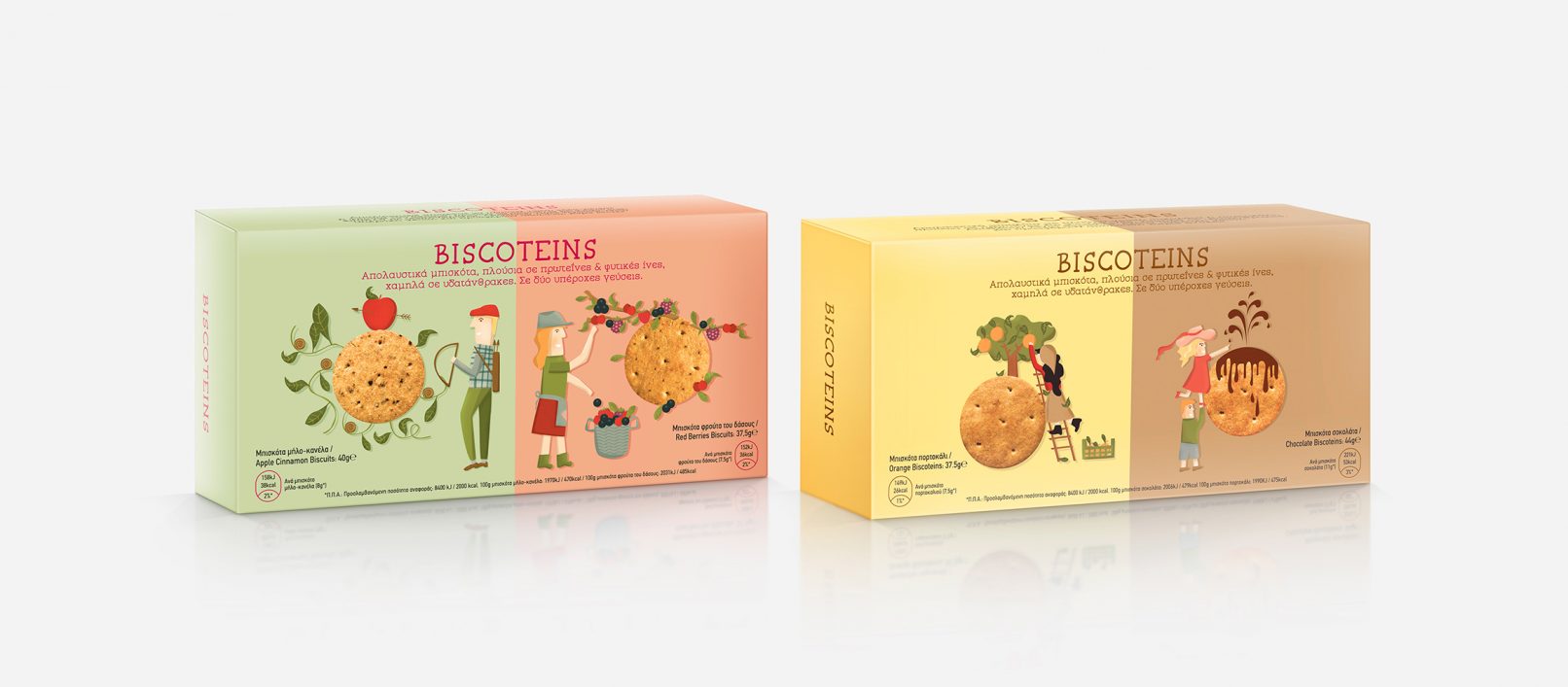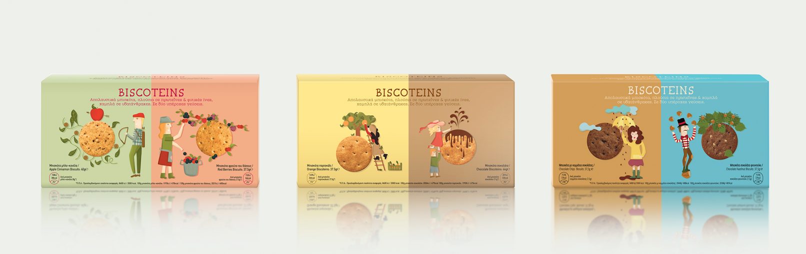 Due to the fact that biscuits are rich in protein, we came up with the name “BISCOTEINS”, which comes from the combination of the words “Biscuit” + “Protein”.
