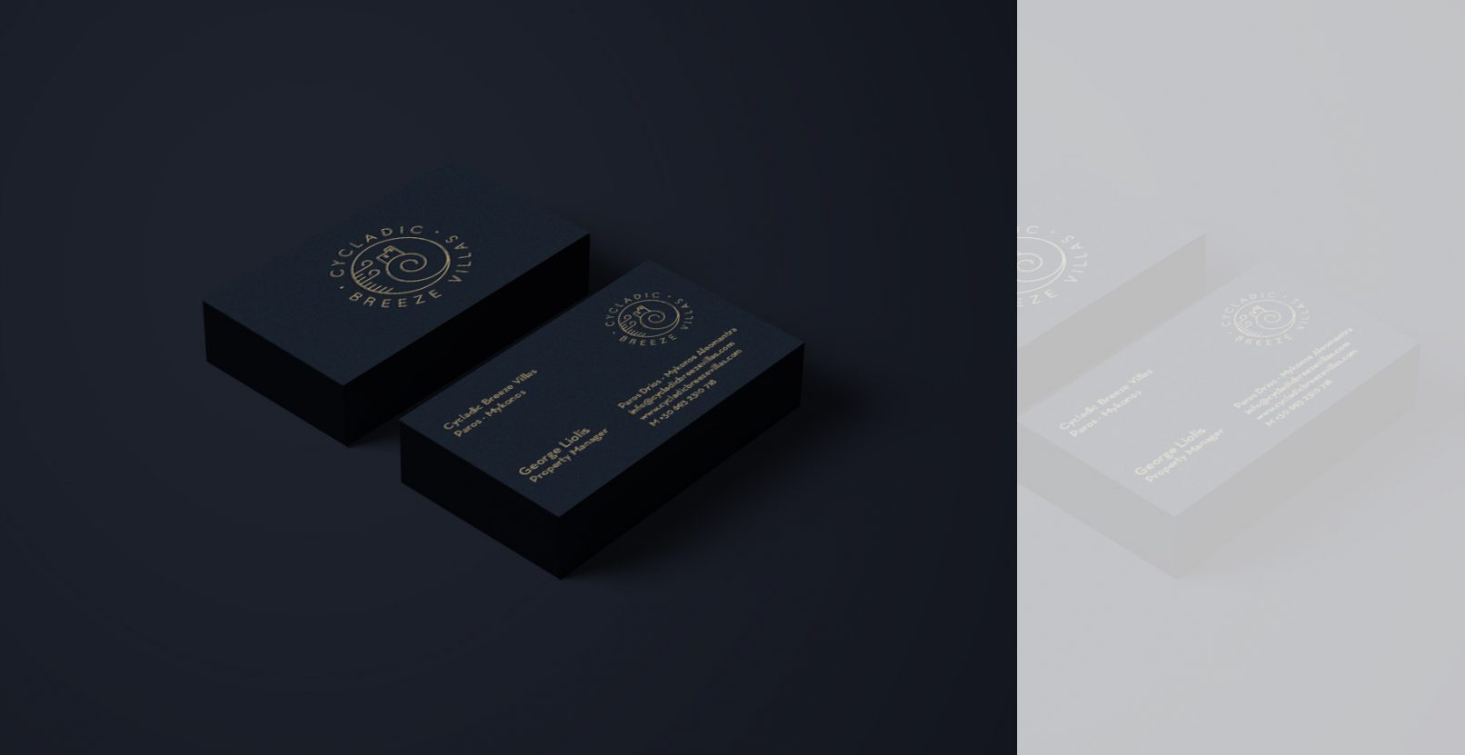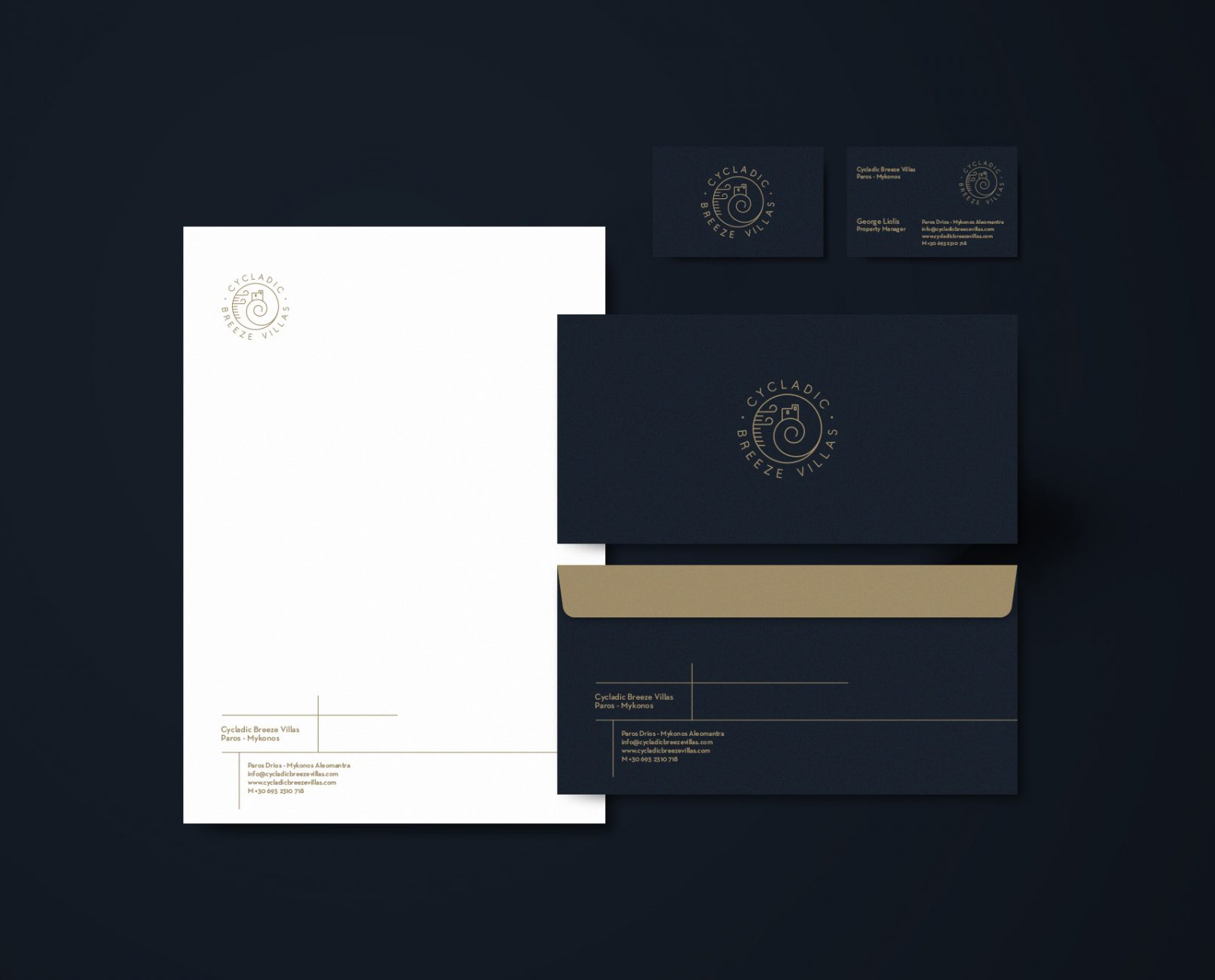 Moving on to the logo design, elements such as the sun, the sea, the breeze as well as the Cycladic architecture of the villas were harmoniously combined to create a modern yet timeless logo, structured by simple lines and curves. The name of the villas was placed around the perimeter of the logo to create a unified effect.