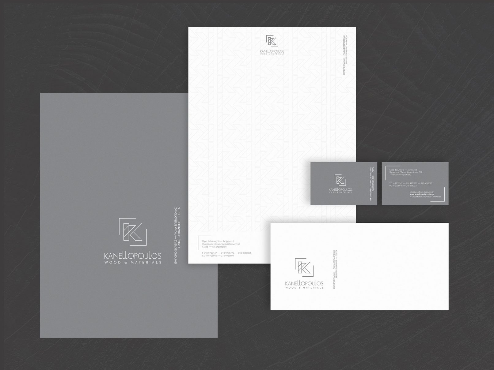 Our main source of inspiration for the new corporate identity of Kanellopoulos Wood & Materials were the geometric patterns of the installed wooden floors and the joints between the wooden boards.