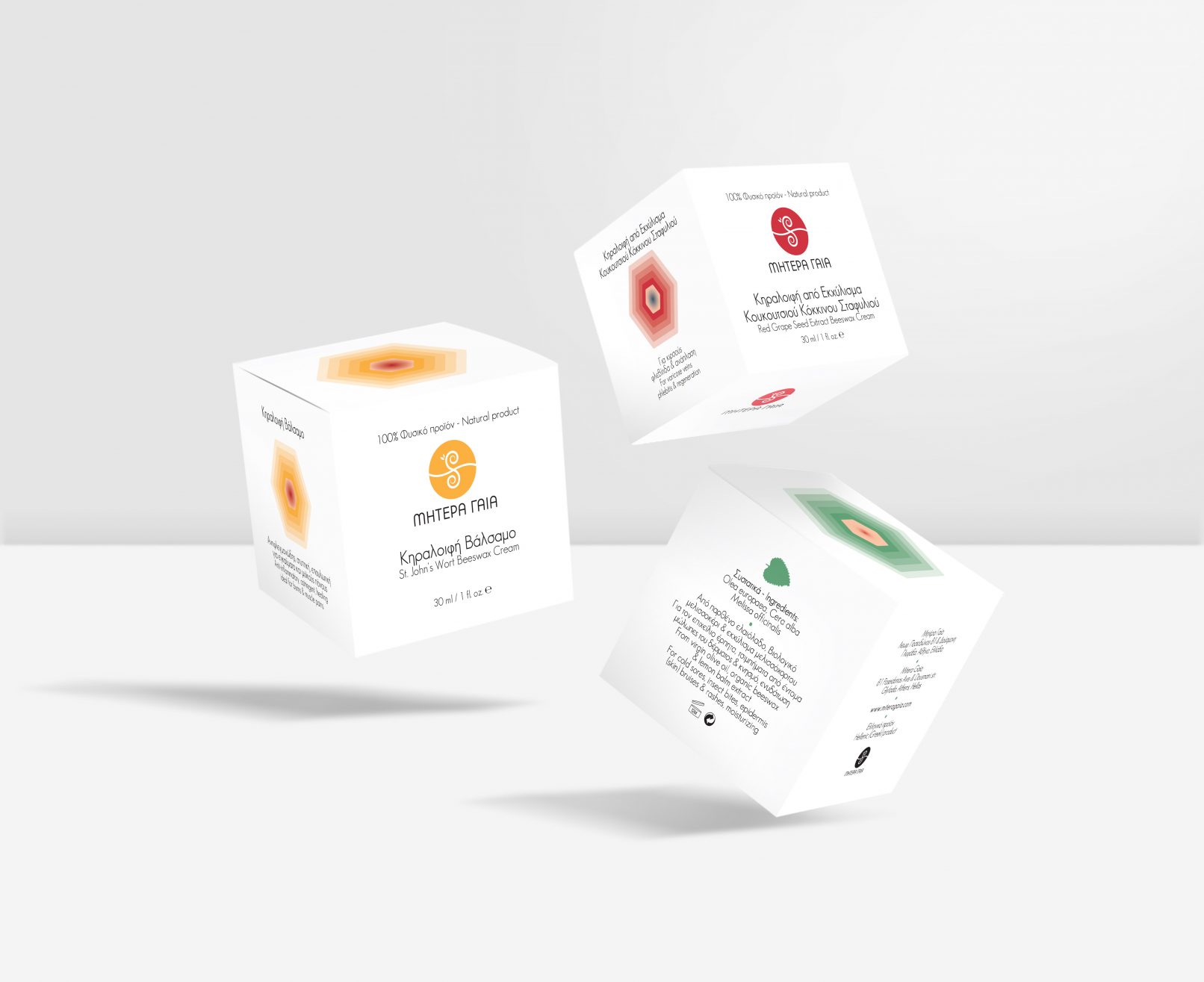 Since these are beeswax creams, we thought to use the characteristic hexagonal shape of the honeycomb cell, so that there is a direct reference to the beeswax which is the basic ingredient.