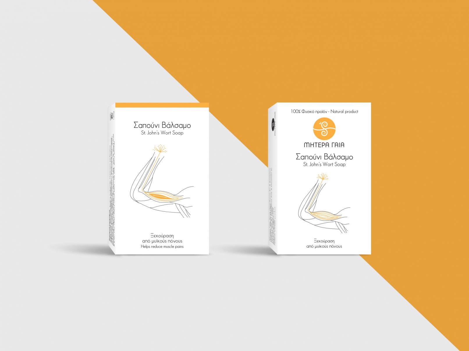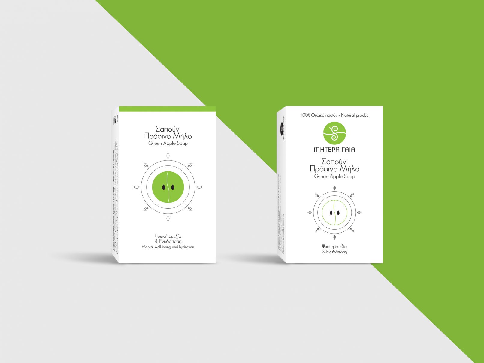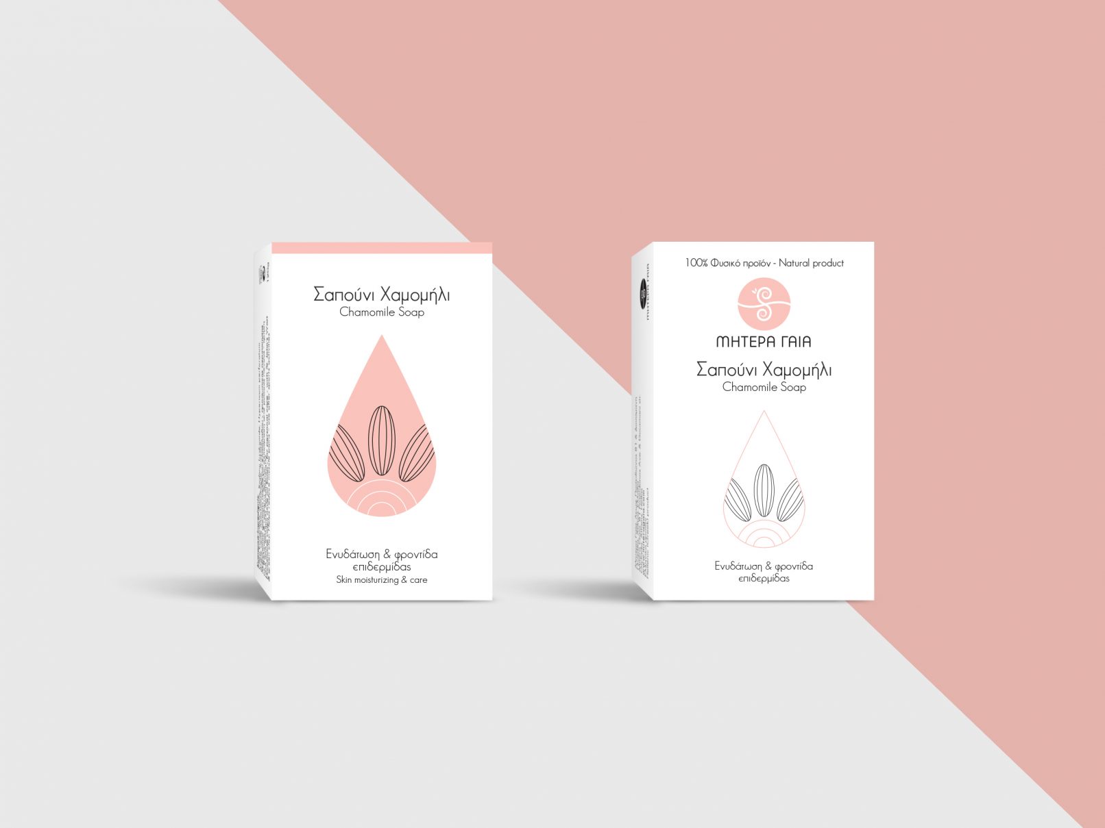 With the new packaging design of Mitera Gaia soaps, we wanted to communicate directly and clearly the beneficial properties that each soap promises, through its basic ingredient, while maintaining an organic – natural look and feel.