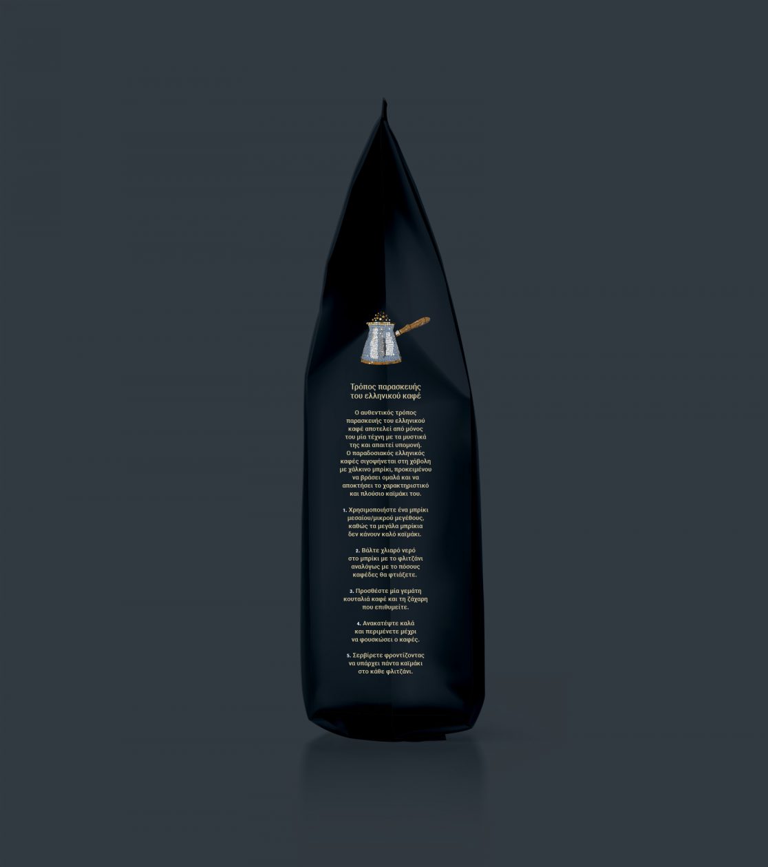 We used this so distinctive and elaborate folk style in the main visual of the packaging to depict a classic Greek coffee served in a traditional cup, aiming at a direct and organic link between the product’s name and the values it embodies.