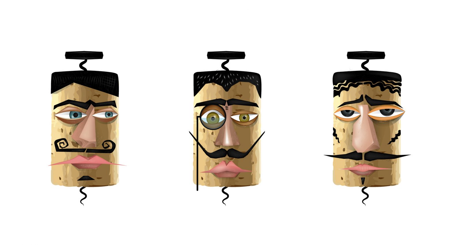 We also added a roguish and humorous touch that directly links the products to the wine, depicting a corkscrew piercing each cork.