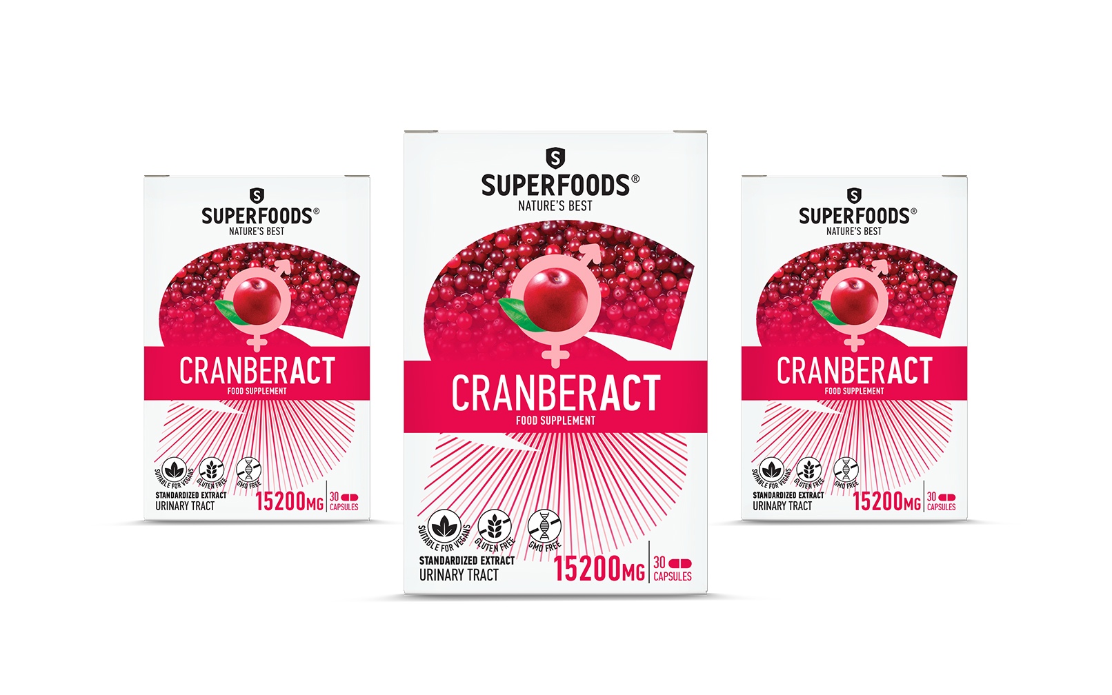 Cranberry is a superfood that contributes to the proper functioning of the urinary system. It has a beneficial effect on recurrent urinary tract infections in men and women, as it is rich in Proanthocyanidins – PACS.